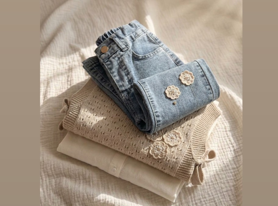 В наборе : рубашка ( 100% хлопок ) + жилетка + джинсы.