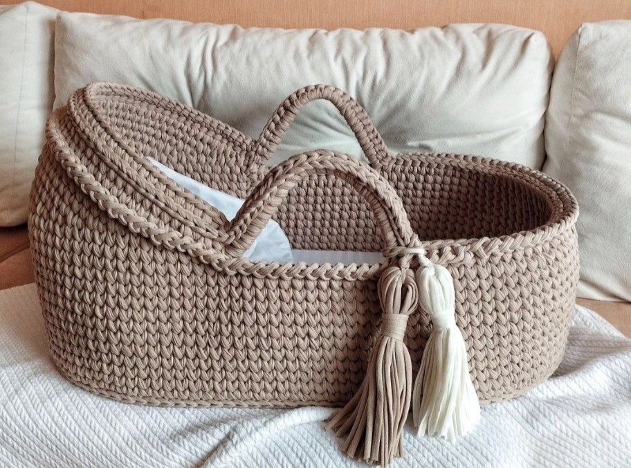 ☘️ 5 причин приобрести люльку для малыша: 🌟Я - мама троих детей и знаю, как важно, чтобы малыш всегда был рядом. С помощью люльки Вы ЛЕГКО организуете для малыша совместный сон, процесс кормления и прогулки на свежем воздухе. ⭐ Детская колыбель ручной работы изготовлена из 100% ХЛОПКА. Это означает, что с первых дней жизни ваш малыш будет окружен ПОЛНОСТЬЮ НАТУРАЛЬНЫМИ МАТЕРИАЛАМИ. Благодаря деревянному донышку люлька будет устойчива на ЛЮБОЙ ПОВЕРХНОСТИ и достаточно надежна, чтобы ПОДДЕРЖАТЬ спинку малыша! ⭐ ИНДИВИДУАЛЬНЫЙ ПОДХОД каждому клиенту: -Возможно напечатать имя малыша на деревянной бирке на люльке. - Если Вы не нашли подходящего цвета в палитре, я обязательно подберу что-то для Вас. -Вы можете изменить размер, цвет, узор. ПРОСТО НАПИШИТЕ МНЕ О ВАШИХ ОСОБЫХ ПОЖЕЛАНИЯХ ) ⭐ Люлька будет ДОСТАВЛЕНА вам в надежной и КРАСИВОЙ упаковке. ⭐ Ну, и наконец, я помогу Вам с отличным подарком для новорожденного. Поверьте, ни одна будущая мама не останется равнодушной, получив такую красивую и полезную вещь! Ваш подарок запомнится!) 🌿 РАЗМЕРЫ: Люлька: длина – 70 см, ширина – 35см, высота – 30 см; Матрас (наполнитель: поролон): длина – 70 см, ширина – 35 см, высота – 3 см; Подставка: длина – 70 см, ширина – 40см, высота – 60 см; МАТЕРИАЛЫ: 100% хлопок, дерево. 🌿Упаковка: воздушно-пузырьковая плёнка, картонная коробка. 🌿Уборка: сухая чистка, чистка влажной тканью. В вязаной люльке малыш чувствовует себя свободно, и в то же время пространство вокруг него ограничено. Это напоминает малышу о его состоянии в мамином животе , где все вокруг кажется привычным и безопасным. ПОЖАЛУЙСТА, НЕ КЛАДИТЕ В ЛЮЛЬКУ РЕБЕНКА, КОТОРЫЙ ПЫТАЕТСЯ ПЕРВЕРНУТЬСЯ ИЛИ ПОЛЗАТЬ, ПОТОМУ ЧТО ЭТО ОПАСНО. ПОЖАЛУЙСТА, НЕ ОСТАВЛЯЙТЕ РЕБЕНКА БЕЗ ПРИСМОТРА. ☘️ Ожидание малыша – самое прекрасное время в жизни женщины, ведь теперь она даст начало новой жизни!